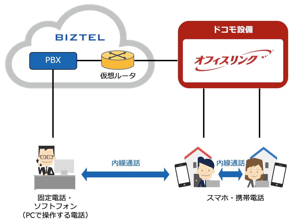 企業向けクラウド電話サービス「 BIZTEL 」が、ドコモの「オフィスリンク®」 スマートフォン・携帯電話の内線化サービス との連携にかかるコスト・期間を大幅削減株式会社リンクのプレスリリース。