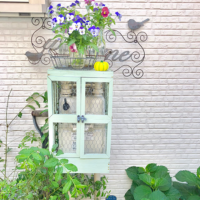 パクパクキッチン』様🇰🇷リノベーション❣️ ガスメーター隠しました👍 せっかく可愛くなったのに💕ガスメーター&パイプ丸見え〜💦は残念なので🥲枠を組んで網の扉を付けて開閉出来るように👍 網だけやけと中丸見え〜なので💦パクパクキッチンマークのプレートも。