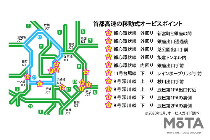 首都高速道路の固定式オービス 移動式オービス地図 - 移動式オービス 固定式オービス 対応アプリなど。