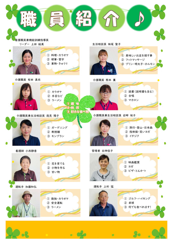 うらたの里デイサービスセンター ☆職員紹介☆ 2023年8月4日 社会福祉法人 倉敷にじの里。