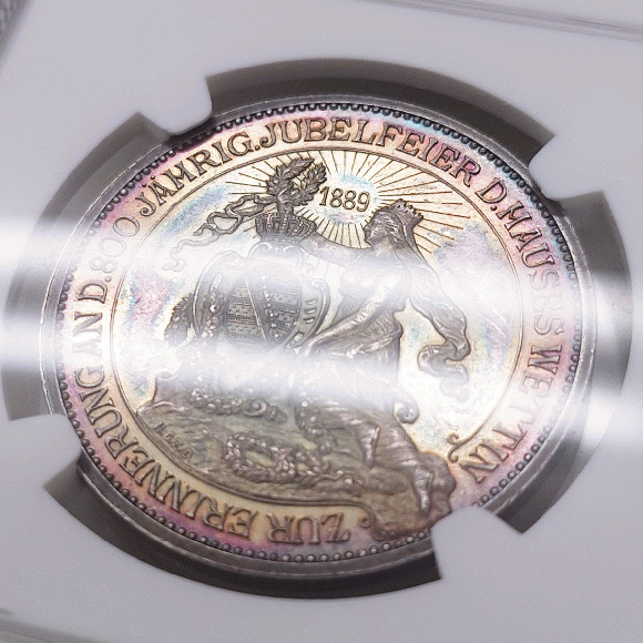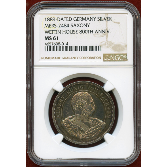 JCCジャパンコインキャビネットドイツ 1889-Dated ザクセン 銀メダル ヴェッティン家800年記念 NGC MS61。