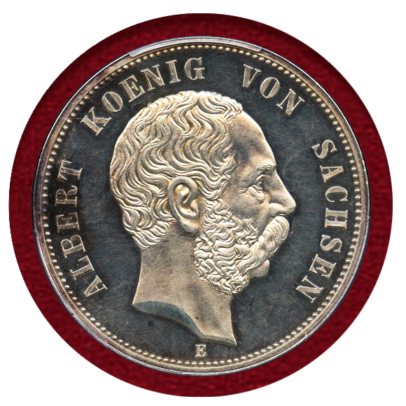 JCCジャパンコインキャビネットドイツ 1889E ザクセン 5マルク銀貨 プルーフ ヴェッティン家800年記念 PCGS SP64。