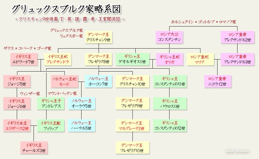 系図で見てみよう グリュックスブルク家☆権中納言の歴史語り☆。