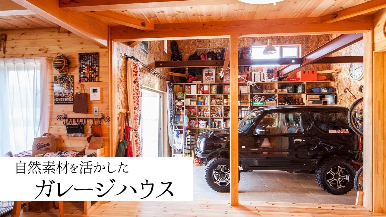 ルームツアー クロス無し!自然素材を活かしたガレージハウス アウトドア好き必見! 岩橋建築 ガレージ キャンプ エアサイクルの家。