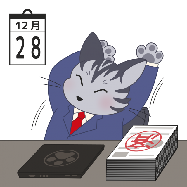 12月のイラスト 年末の猫 仕事納め無料イラスト素材素材ラボ。