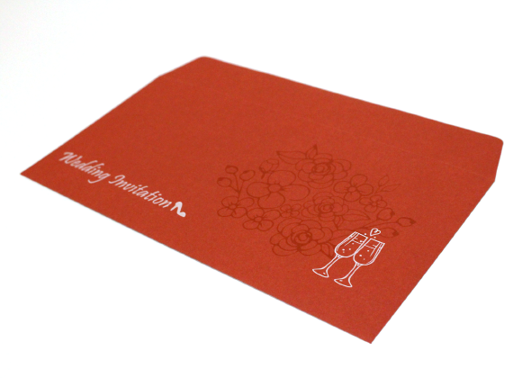 赤封筒×白印刷お手軽カラー封筒・フタ全面印刷可能の封筒・オリジナル封筒なら「ドット封筒」株式会社タイムテーブル。