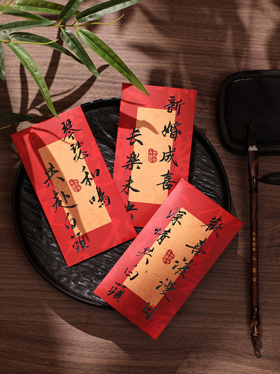 Dielianhua 中国風結婚用赤い封筒 - 書道スタイル - 10枚入り。