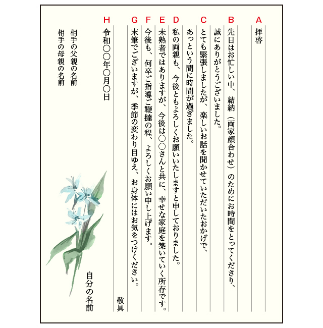 顔合わせ後のお礼状親同士の例文!結納後の息子や娘の結婚相手のご両親への手紙!堅苦しくない例文をご紹介!入籍後の挨拶状も!デコボコふぁん。