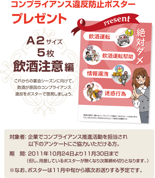 コンプライアンス推進月間のポスター -茨城県つくば市のパンフレット、カタログ、ロゴ、チラシ制作会社。おもな対象地域:つくば市、桜川市、筑西市、つくばみらい市、石岡市、守谷市、下妻市、かすみがうら市、水戸市、土浦市。