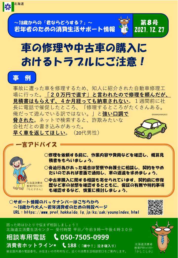 車の修理や中古車の購入におけるトラブルにご注意!北海道庁のブログ「超!!旬ほっかいどう」 - 楽天ブログ。
