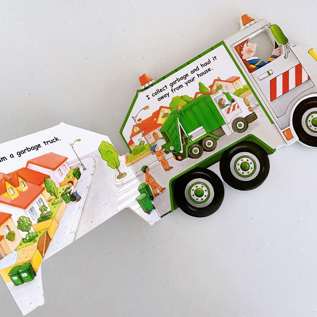 I AM A GARBAGE TRUCKゴミ収集車 英語版 ボードブック 幼児用 はたらく車ギフトプレゼントしかけ絵本。
