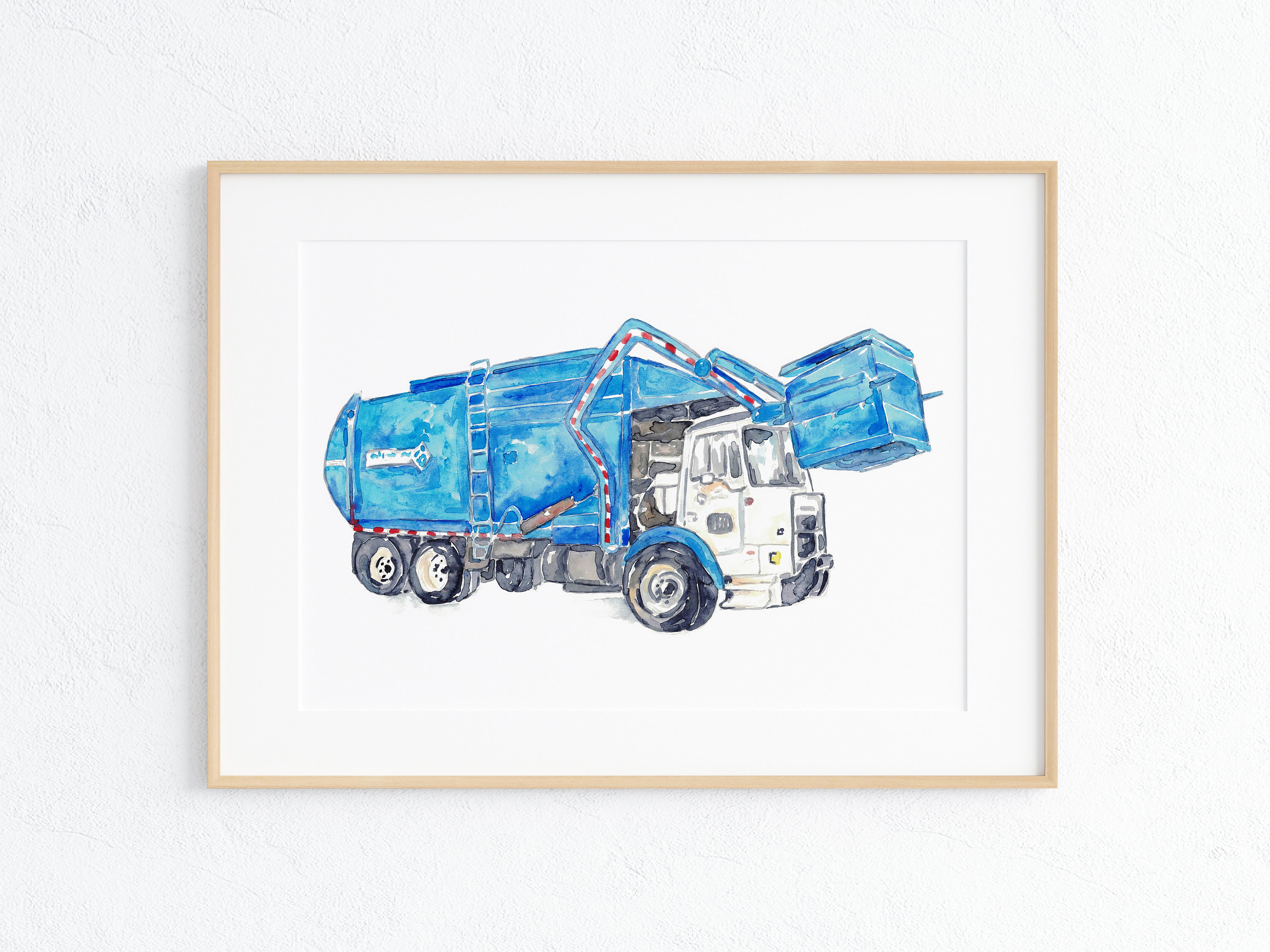 ゴミ収集車プリント ゴミ収集車 キッズルーム 壁装飾画 水彩 インクブルー アート イラスト 男の子 女の子 車 車両 保育園 カラフル - Etsy日本。