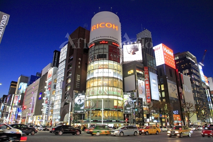 東京都 銀座 三愛ビル 夜景36928453 の写真素材 - アフロ。