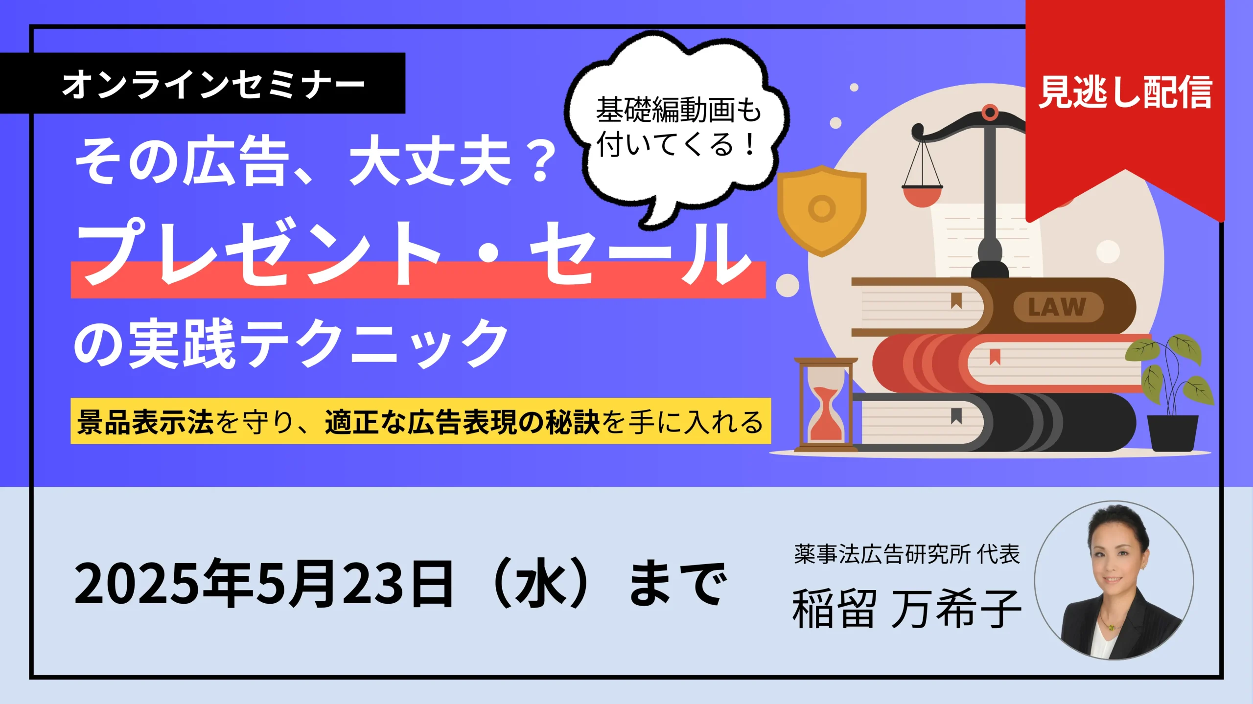 開催終了 景品表示法セミナーその広告、大丈夫?プレゼント・セールの実践テクニック~景品表示法を守り、適正な広告表現の秘訣を手に入れる~ - 薬事法 広告研究所。