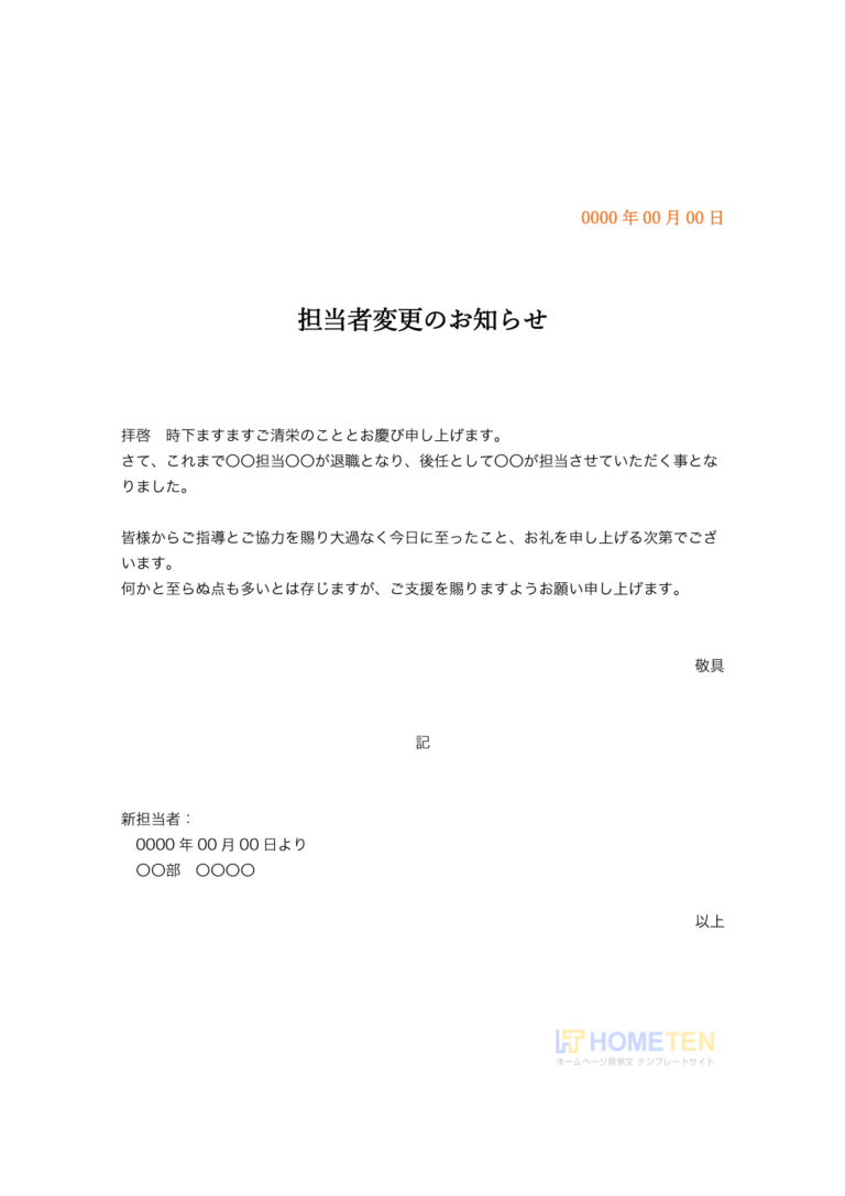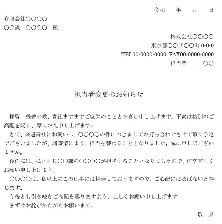 ビジネスメール 担当者変更ビジネス書式テンプレート 経費削減実行委員会。