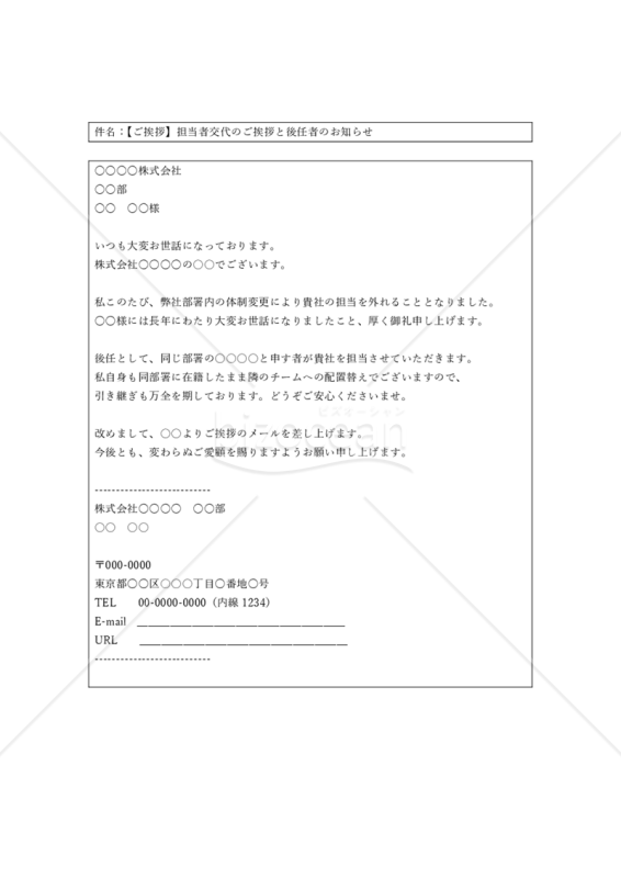 例文 引継ぎ挨拶メール 担当変更 の書き方とマナーを前任者・後任者別に紹介 - CANVAS若手社会人の『悩み』と『疑問』に答えるポータルサイト。