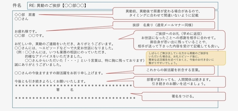 異動挨拶メールへの返信は?社内・社外 取引先 など相手別の例文ビジネスマナーAll About。