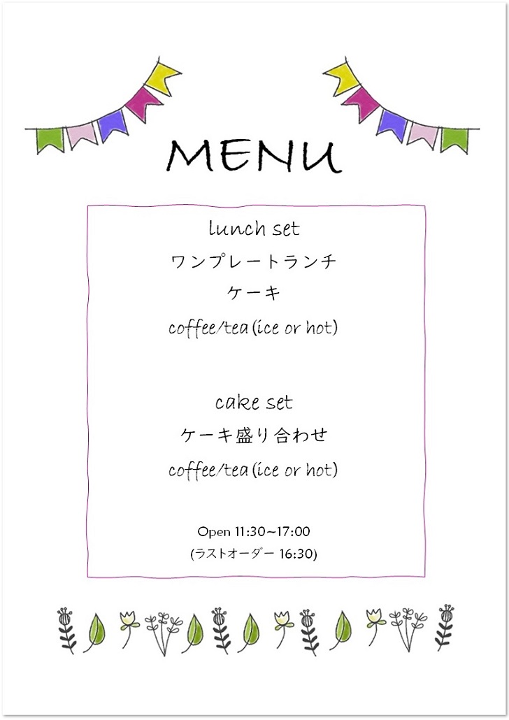 おしゃれなデザイン!メニュー表「word・Excel・pdf」💗無料ダウンロード「かわいい」雛形・テンプレート素材。