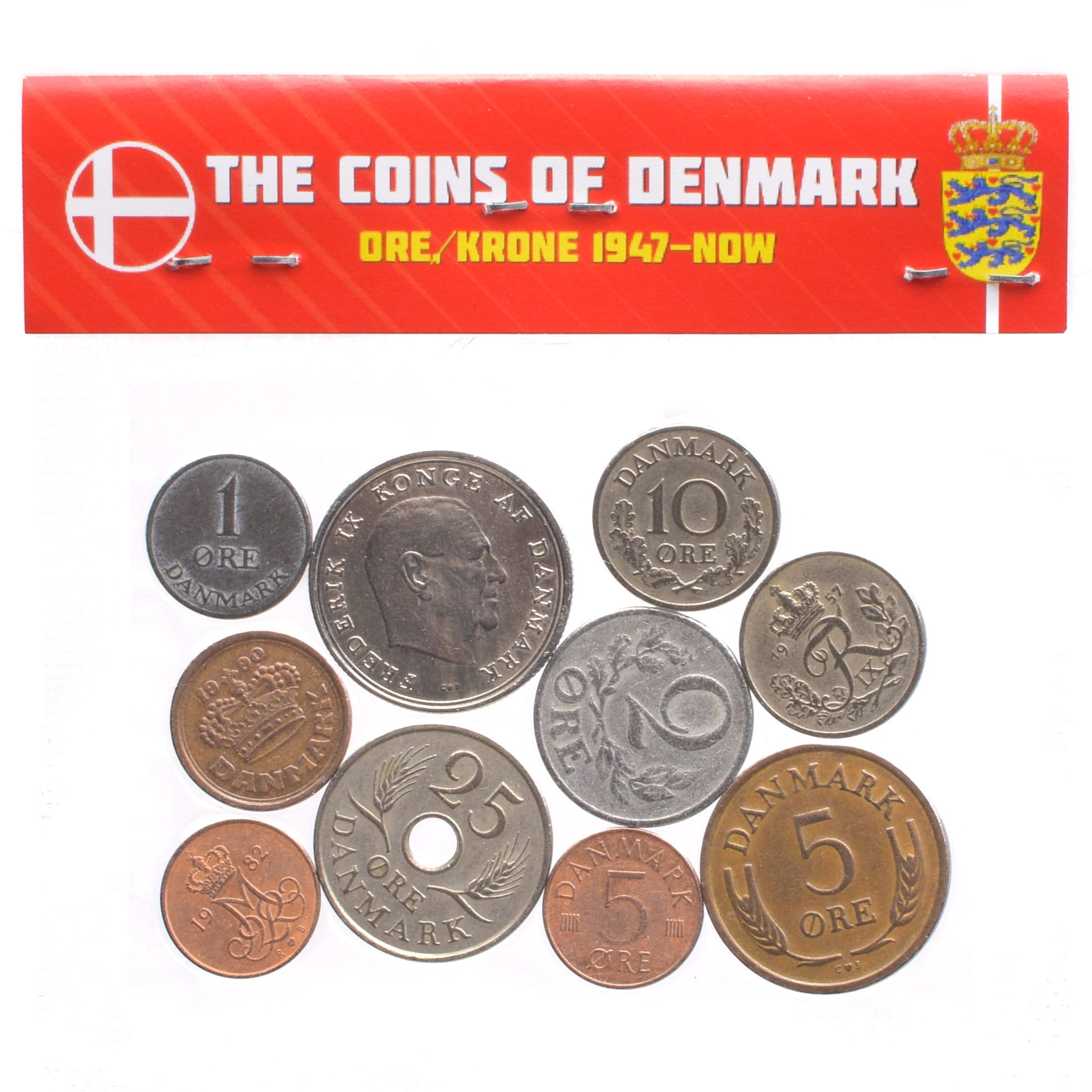 デンマークの 10 種類のコイン。デンマークの通貨: オーレ、クローネ、クローネ。1947 年以来の古い収集価値のあるお金 - Etsy 日本。