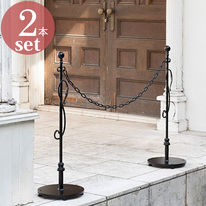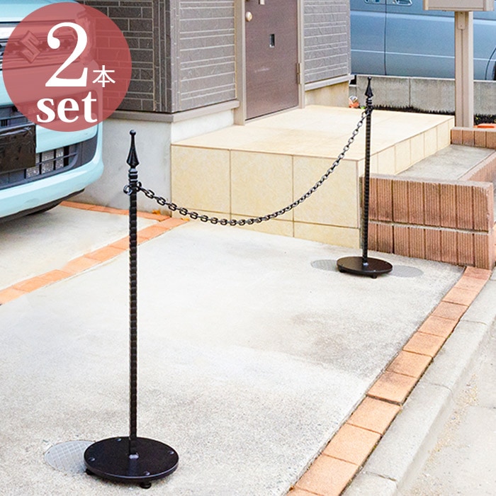 駐車場 ポール おしゃれ フェンス アイアン チェーンスタンド 本体2本+鎖1本+エストアオリジナル重り用袋2枚付き セット 駐車場ポール チェーンチェーンポール 可動式 高級 上質 屋外。