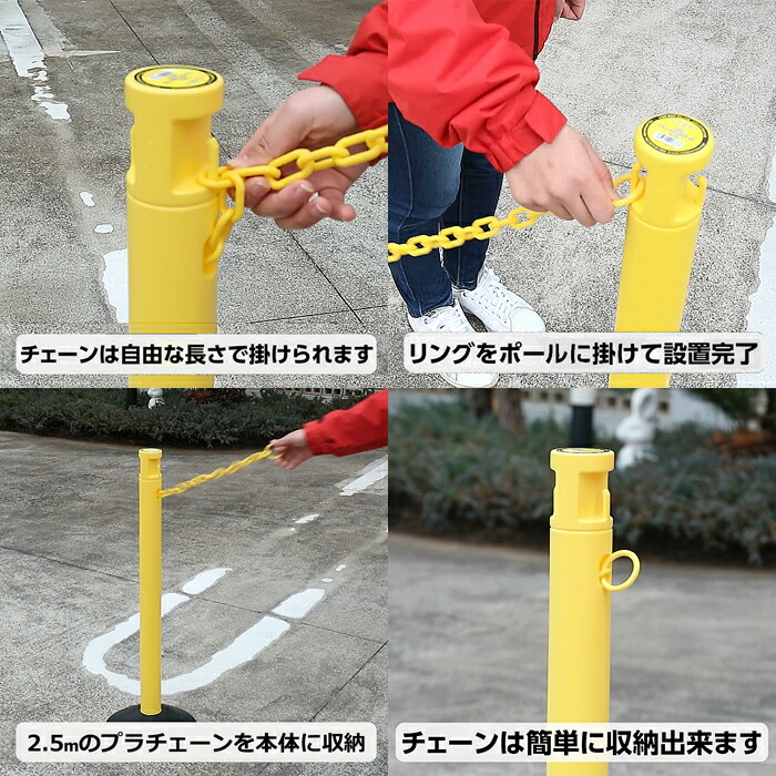 駐車場 ポール チェーンスタンド おしゃれ 2.5Mチェーン収納カラーポール 10本セット ゴムベース付き チェーンポール 置くだけ 可動式 侵入防止進入禁止 : ESTOAH.home エストアホーム - 通販 - Yahoo!ショッピング。
