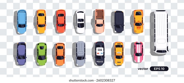 さまざまな孤立した車のアイコンのコレクション車の上面図イラストベクトル無料ベクトル素材。