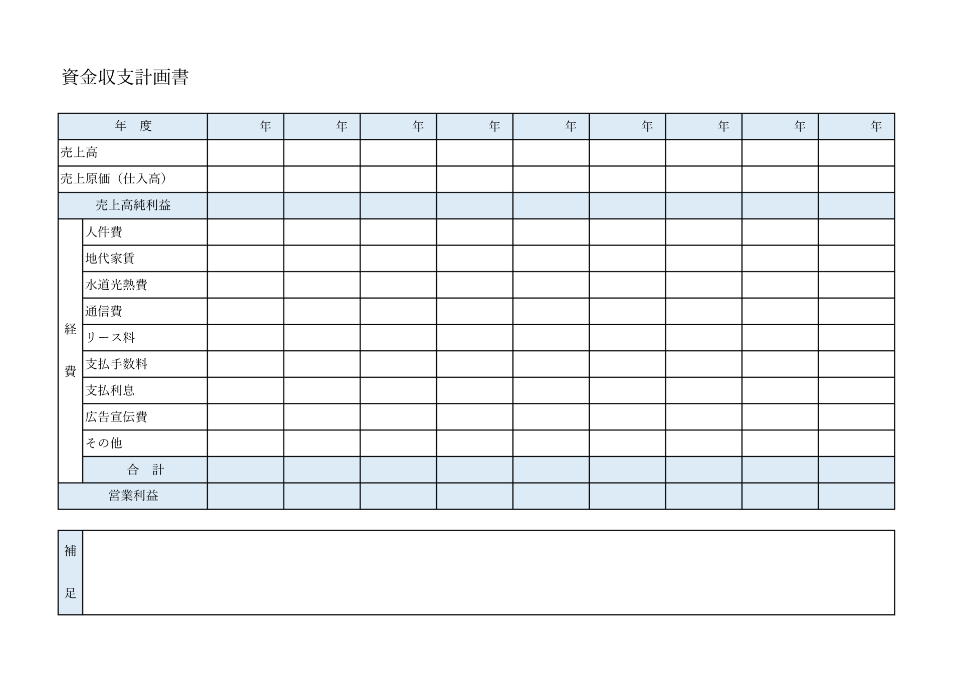 事業計画書フォーマット無料エクセル・スプレッドシート。