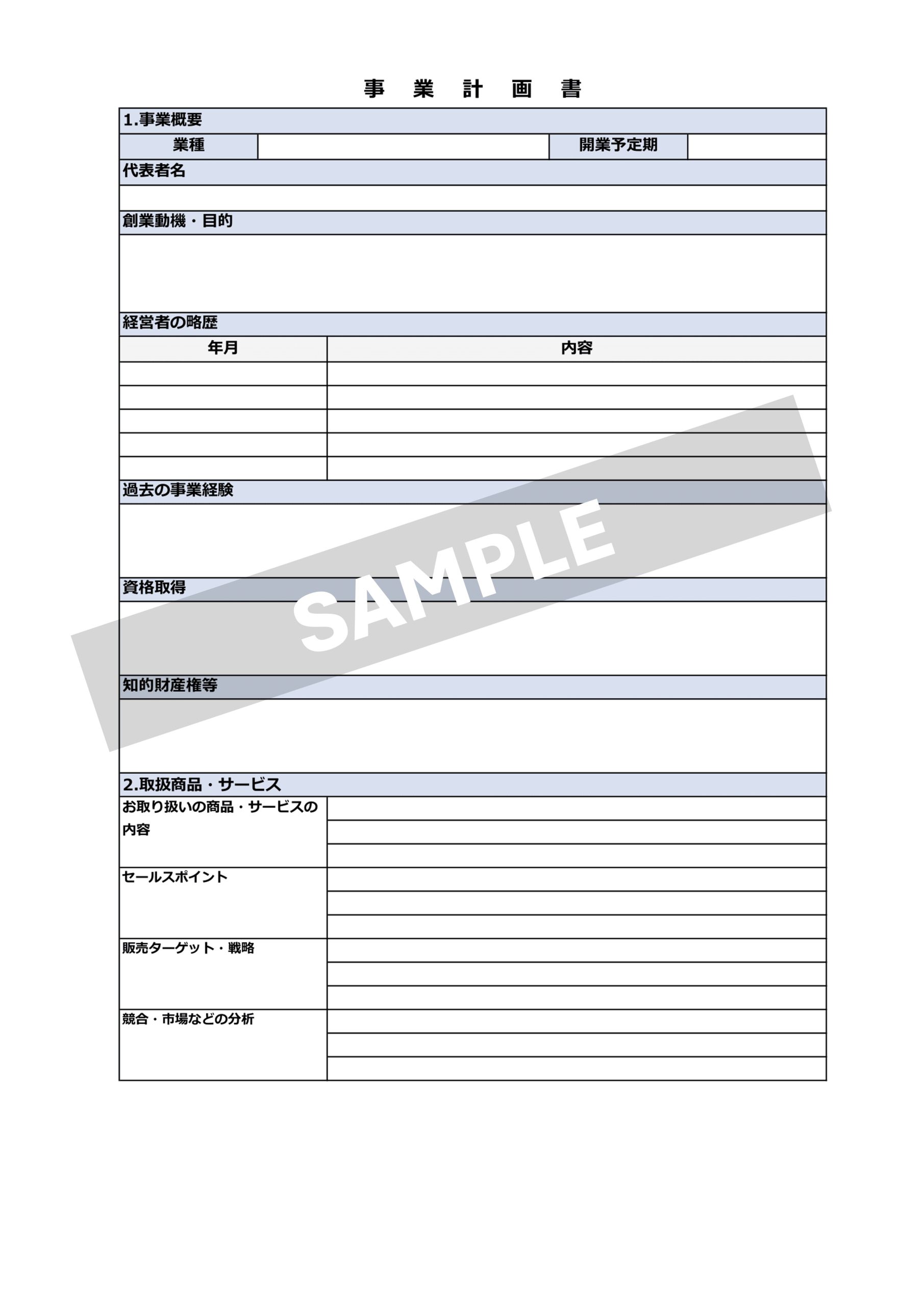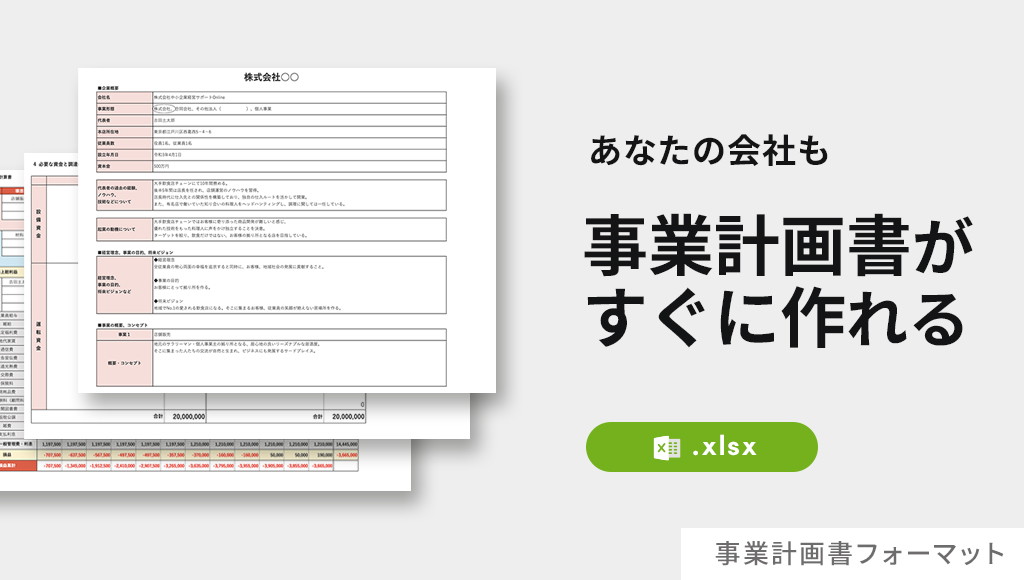 事業計画書の書き方・作り方 フォーマット 例・見本・サンプル 雛形 ひな形テンプレート 無料 01 個人事業主・中小企業・小規模法人向けエクセルExcel-文書 テンプレートの無料ダウンロード。