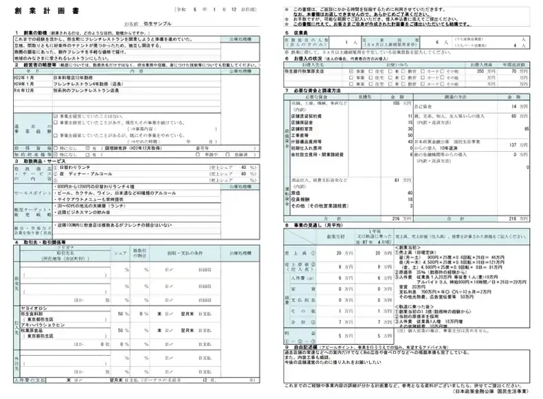 事業計画書の書き方・作り方 フォーマット 例・見本・サンプル 雛形 ひな形テンプレート 無料 04 日本政策金融公庫の創業者・起業者向け融資・ローンの審査用 ―日本政策金融公庫様式に準拠したオリジナルバージョン ワードWord-文書 テンプレートの無料。