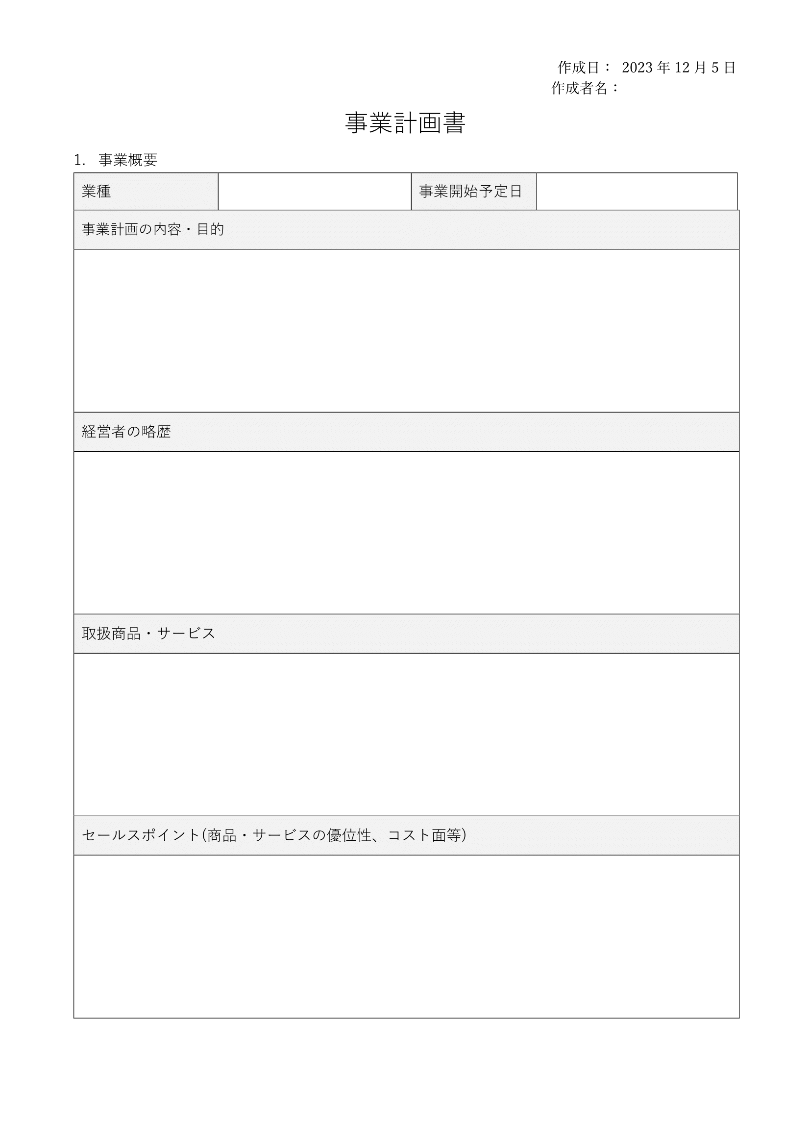 事業計画書の無料テンプレート配布 - 起業開業.net。