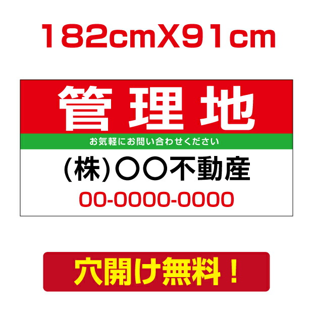 クーポン配布中♪名入れ対応 管理 看板 W182cm×H91cm 不動産 看板「管理地」不動産管理会社向け おしゃれ シンプル かわいい 防水屋外用 契約者募集 業務 契約更新 賃貸管理 目立つ 作成 制作 オーダー 業務用 アルミ複合板3mm プレート 看板。