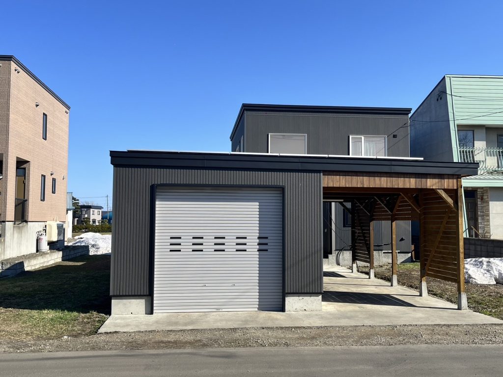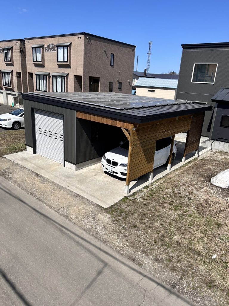 アウトドアベース 太陽光システム付きガレージ 札幌市北区 - 屋根プロ。
