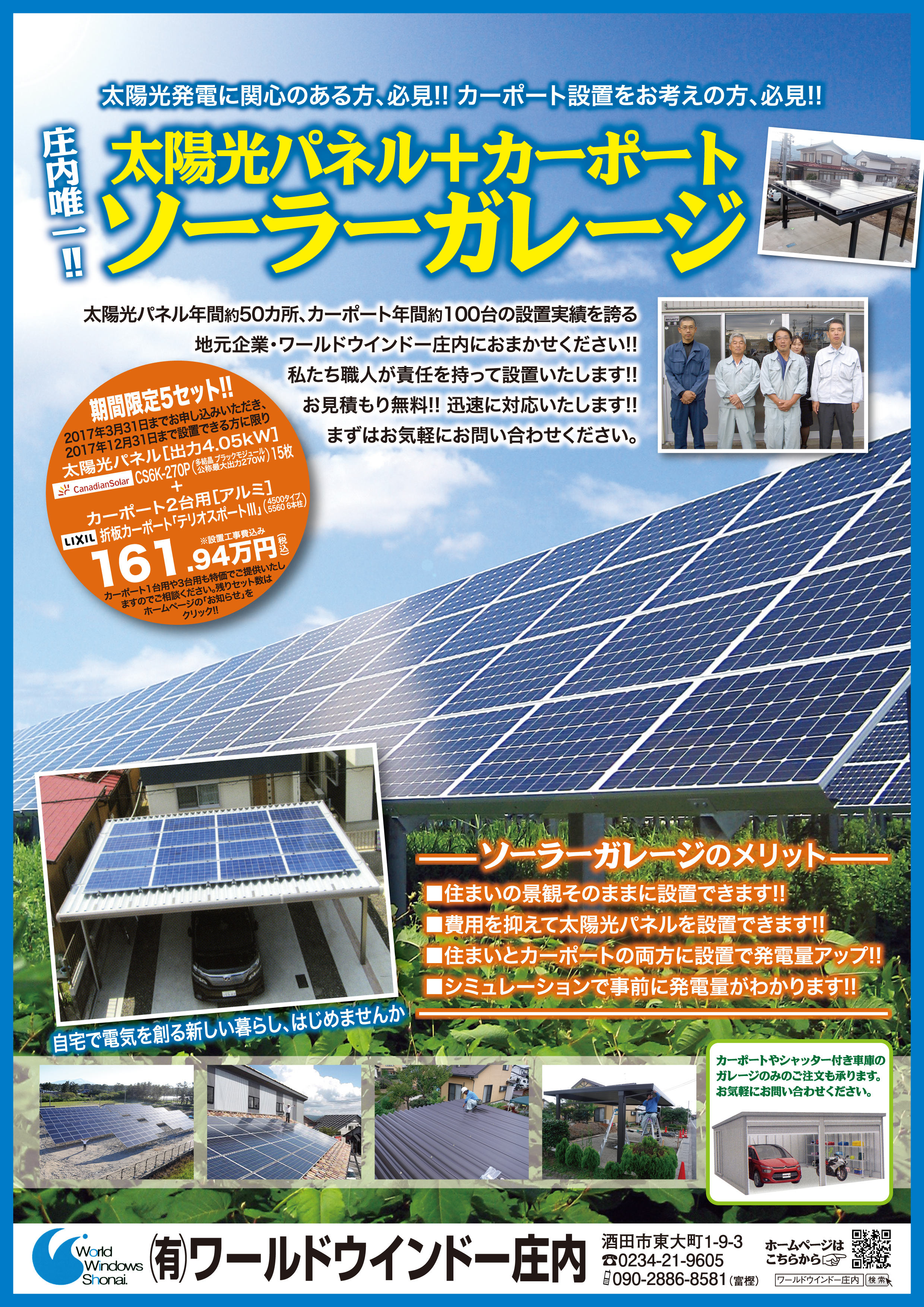 長野県長野市で太陽光発電カーポート、ガレージを安心価格と安心施工。