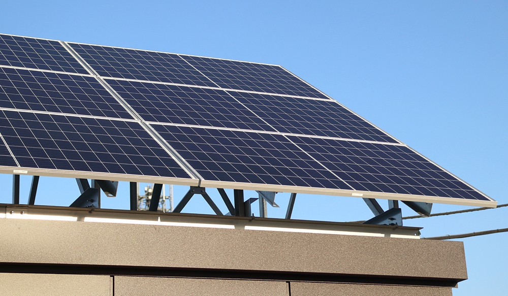 ガレージ屋根に太陽光パネル - ecosunメンテナンスサービス株式会社。