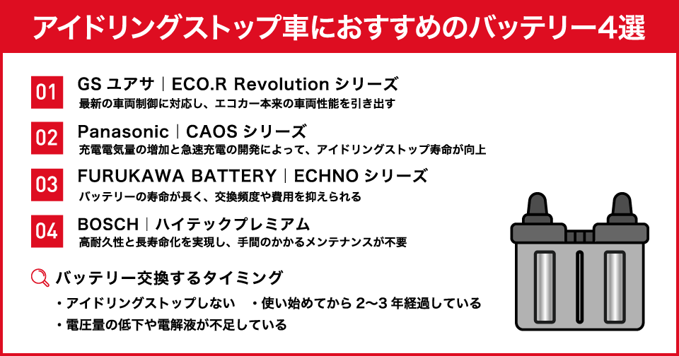 アイドリングストップ搭載車には通常車用バッテリーではダメ? 専用バッテリーはここが違う!カー用品のジェームス。