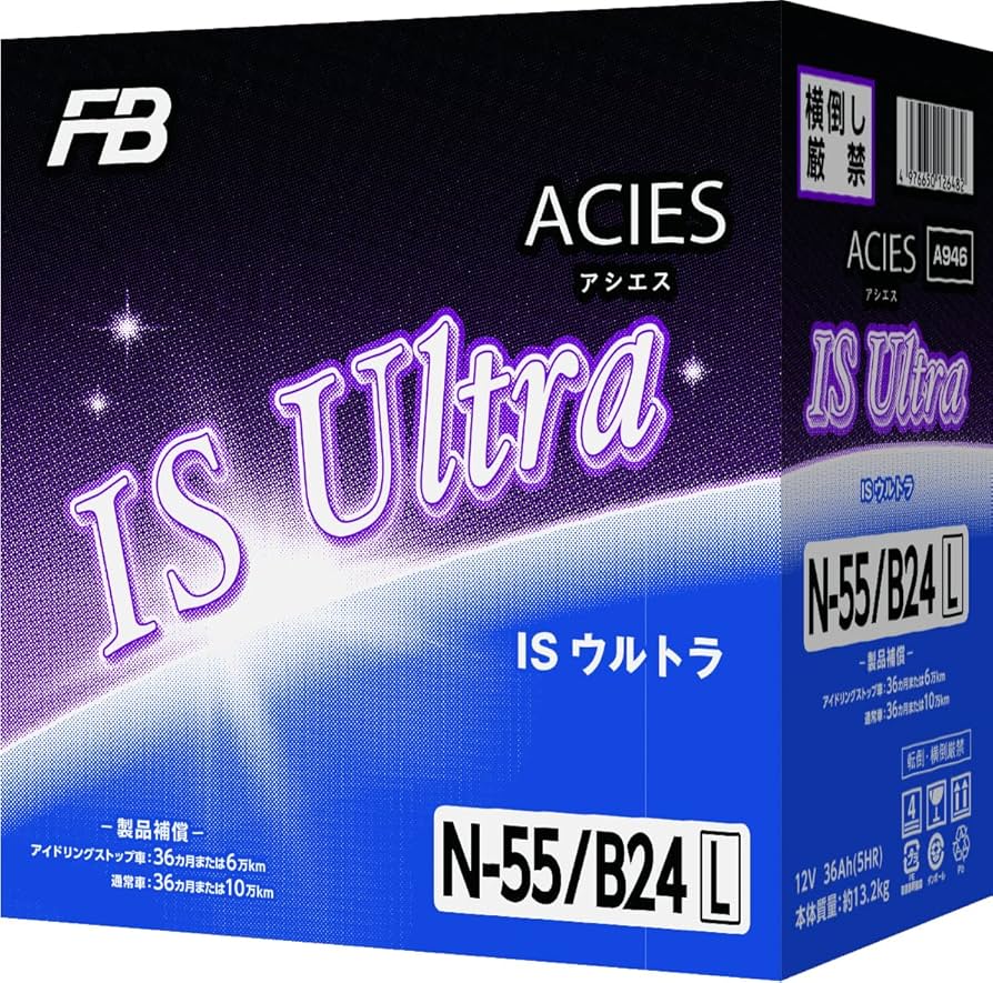 AmazonFB 古河電池アイドリングストップ車用バッテリー N-55B24L 充電制御車対応UB.ACIES ウルトラバッテリーアシエスキャパシタ融合 長寿命タイプ ブックモールド極板採用カーバッテリー車&バイク。