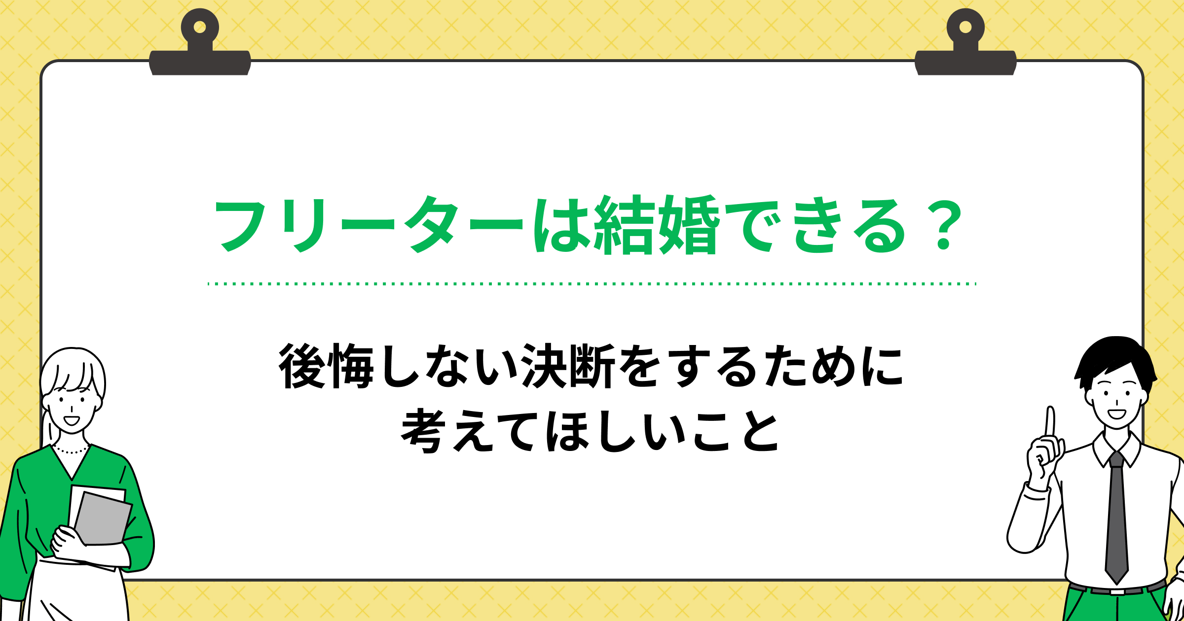 フリーターは結婚できる?後悔しない決断をするために考えてほしいこと。