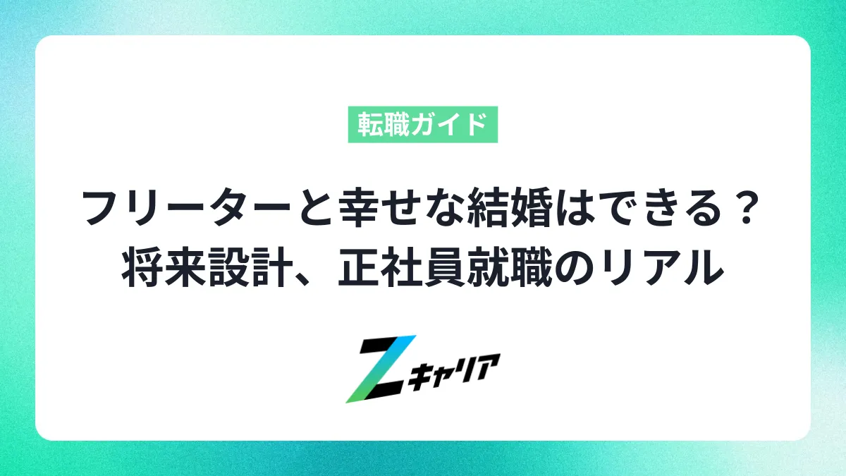フリーターと幸せな結婚はできる?将来設計、正社員就職のリアルについて解説しますフリーターの就職・転職Zキャリア 就職・転職ガイド。