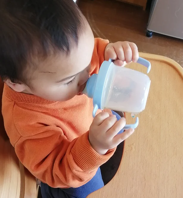 ダイソーで見つけた!取っ手がたためるコンパクトベビーストローマグの便利さ。