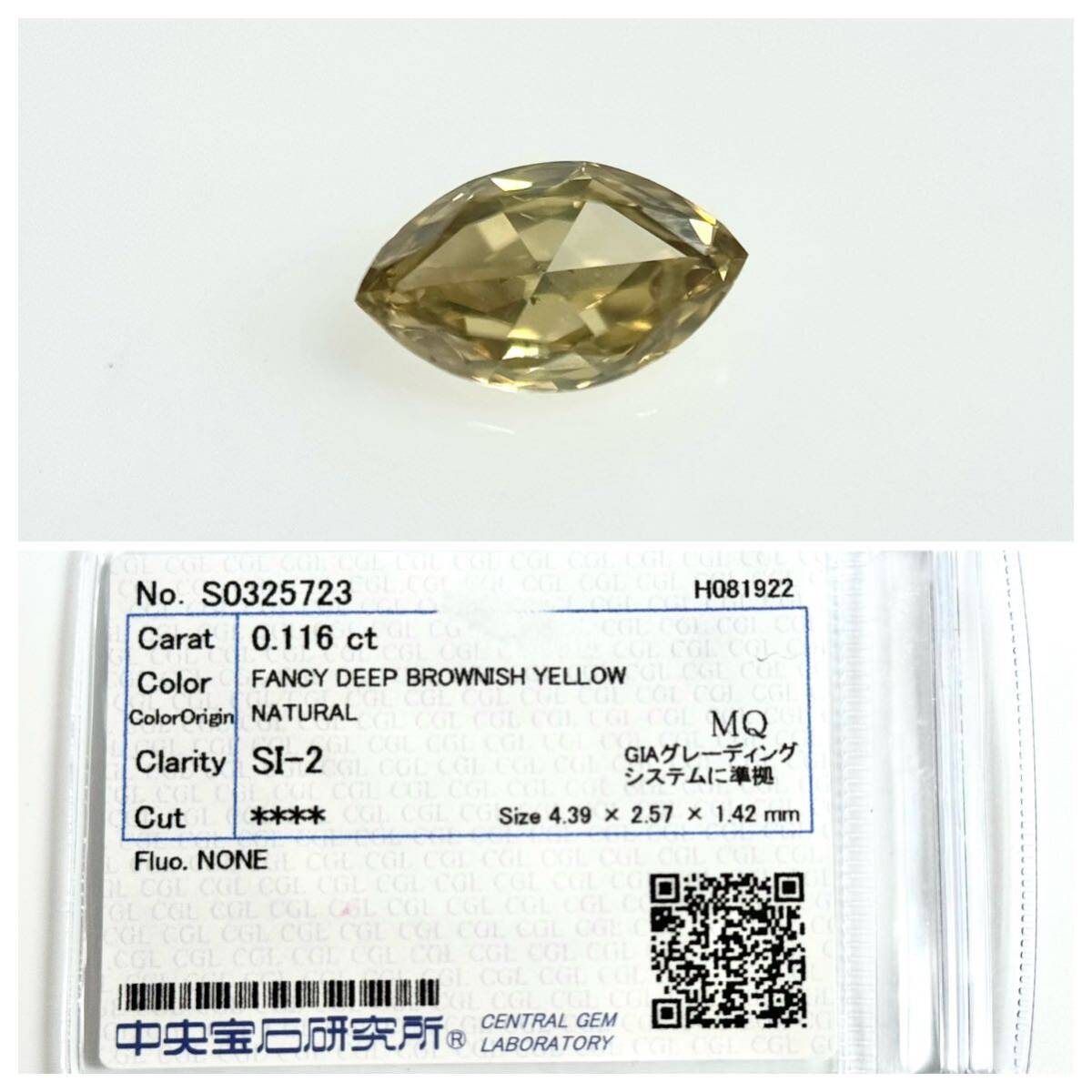 0.116ct FANCY DEEP BROWNISH YELLOW SI2 マーキース ダイヤモンドルース。