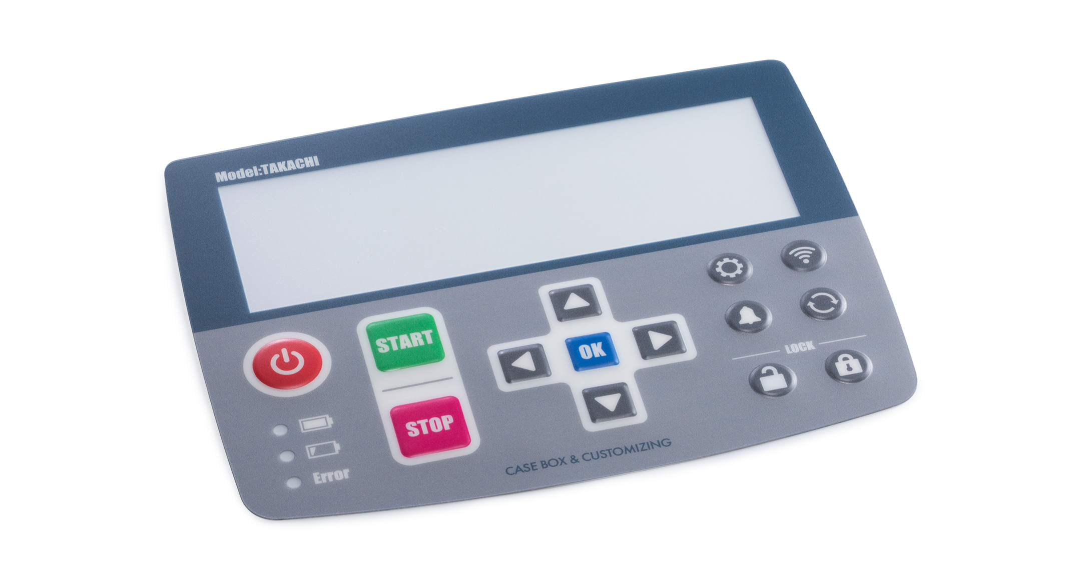 表面シート・操作パネルシート・メンブレンスイッチ用シート・クリックエンボス付シートカスタム製品タカチ電機工業 -産業用・工業用のケース・ボックス・ラック・筐体の製造メーカ。