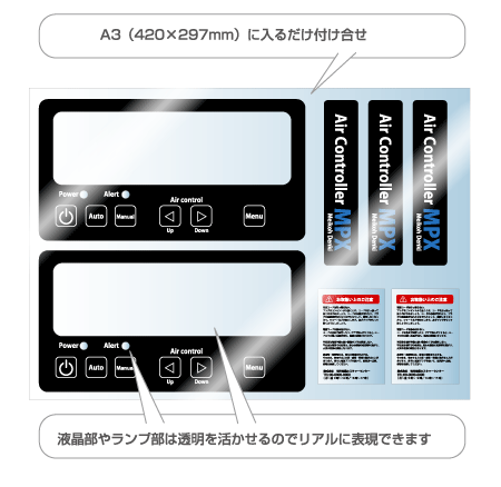 操作パネル 低イニシャルコストの表面シート・操作パネルシート製作。