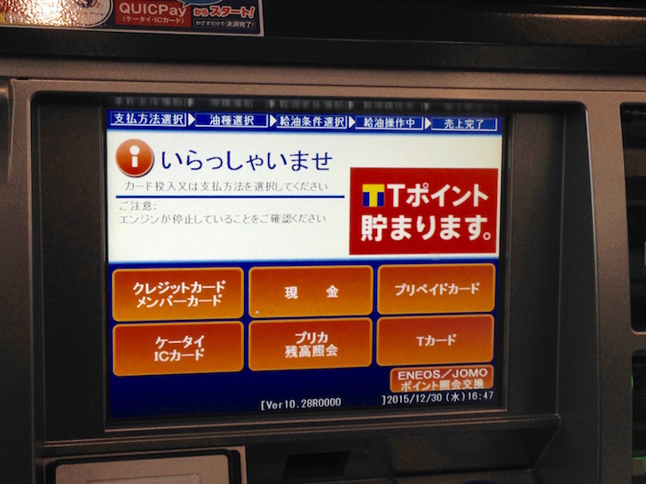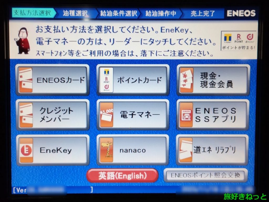 タッチパネル操作解説 ENEOSセルフスタンドでポイント払いする手順朝から昼寝。