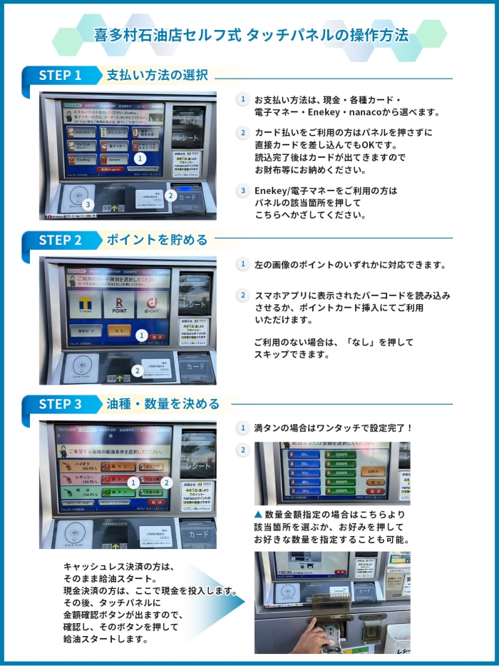 エネオスタッチパネルの操作方法を解説得するキャッシュレス決済と給油方法とっちゃんブログ。