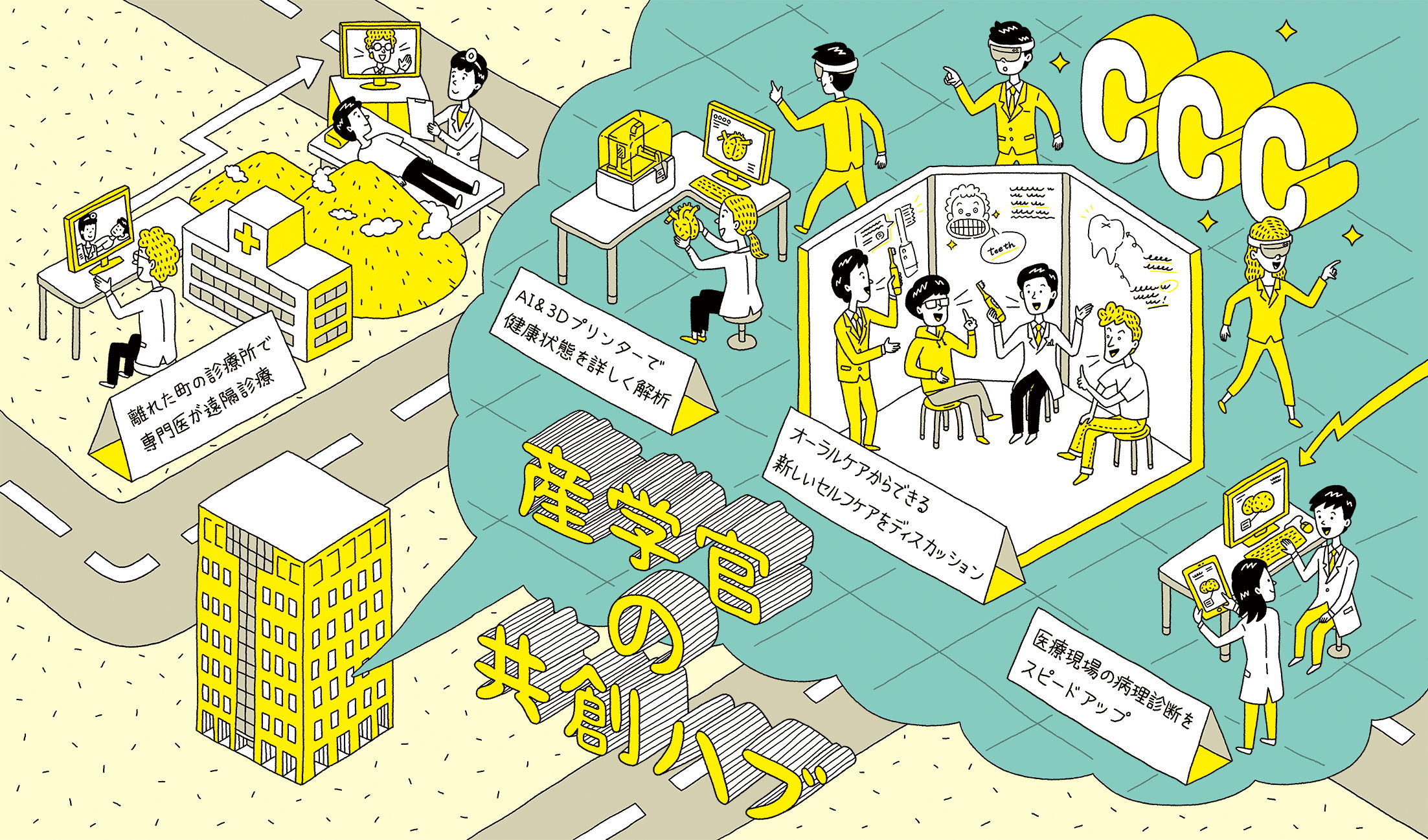 企業サイトトップビジュアル ビジネス経済 研究開発のイメージイラストキタ大介AWRD。