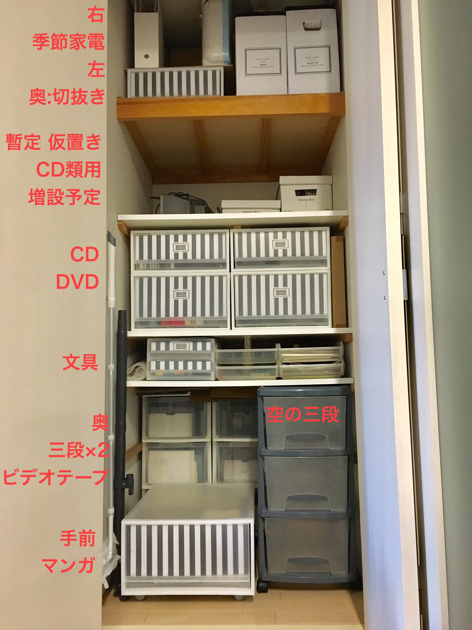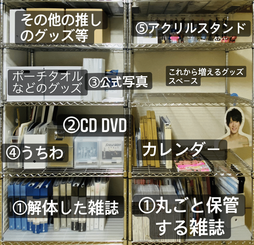 かこるか on X: " ジャニオタ収納術 春から殆ど変わらずですが年末が近いせいか以前ツイにたまに反応あるので更新しました。動線を考えて似た物は集中させ、増設可能にしてます。増設時はスケールが同じ無印にすると決めたので、今は買い足す時は無印です。 VHSの整理が。