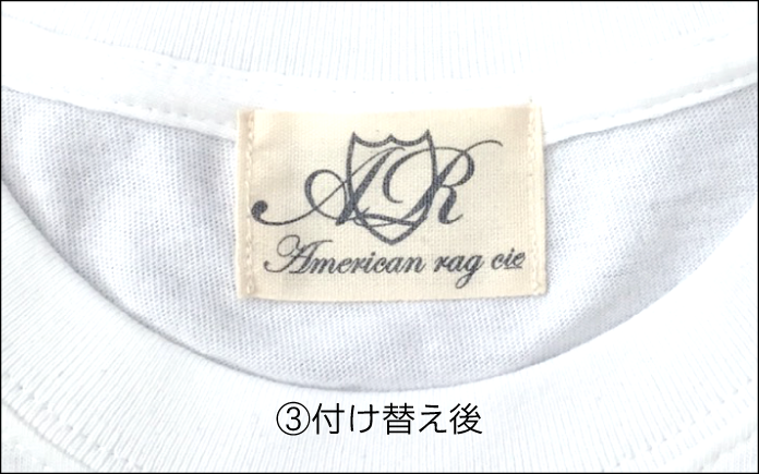 オルターワークスではタグを完全除去した上での付け替えが可能ですブランドタグ 付け替え ネーム生産 オルターワークス Alter Works。