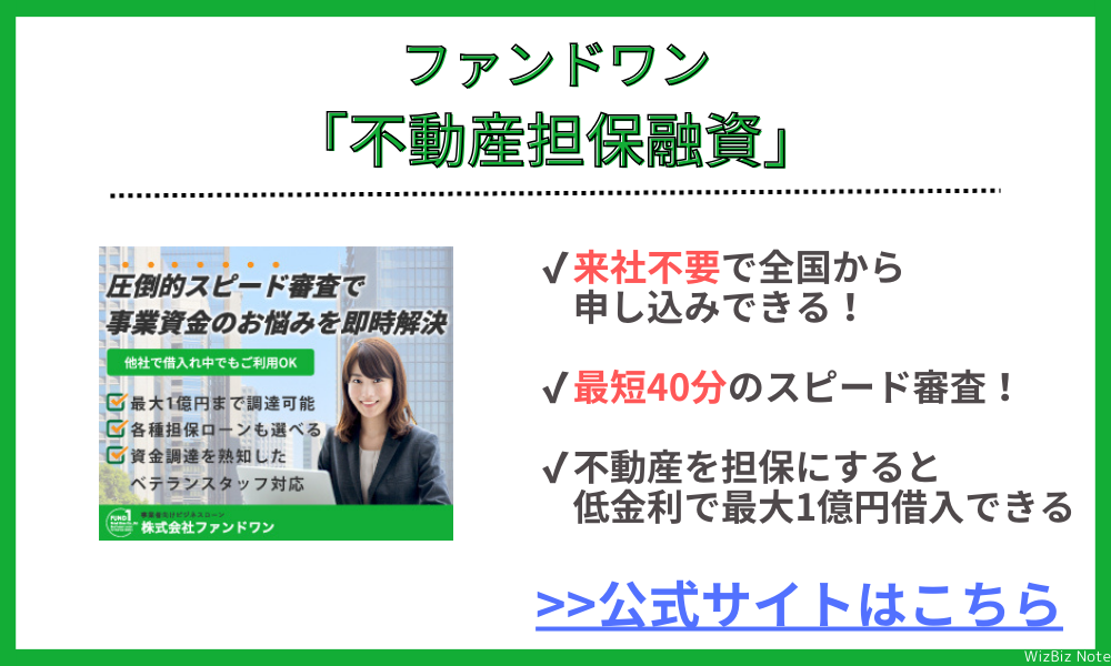ファンドワンの口コミ・評判はどう?安全なビジネスローン?実際の利用者に聞いてみた!WizBiz Note。