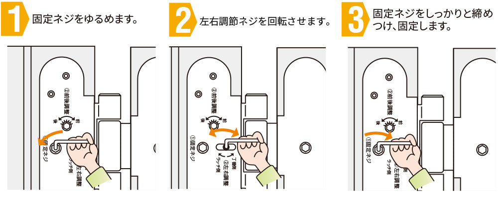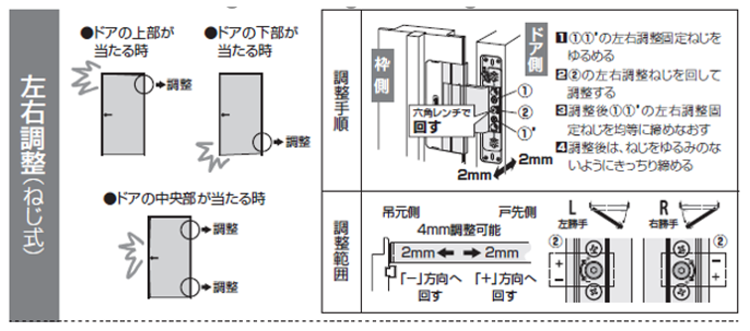 内装ドア開き戸の蝶番の左右調整を教えてください。 - 内装ドア - Panasonic。
