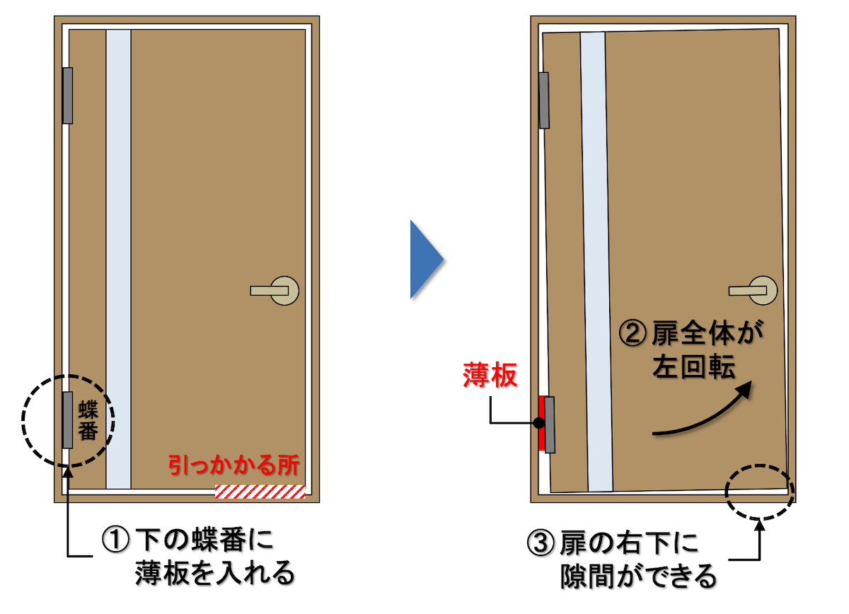 建て付けが悪く引っかかる扉をDIYで直す方法調整できない蝶番のドアでも簡単修理!金のなる木で大家生活。